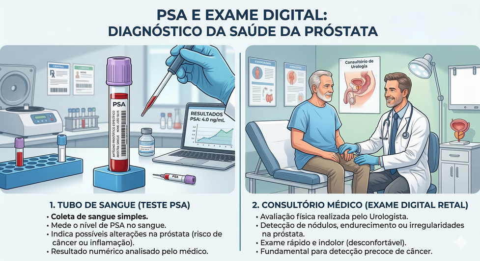 É fundamental entender que esses exames se complementam. Portanto, um PSA normal não descarta totalmente a doença, assim como o exame digital sozinho pode não ser suficiente. Se houver alterações, o médico indicará a biópsia da próstata para confirmar o diagnóstico.